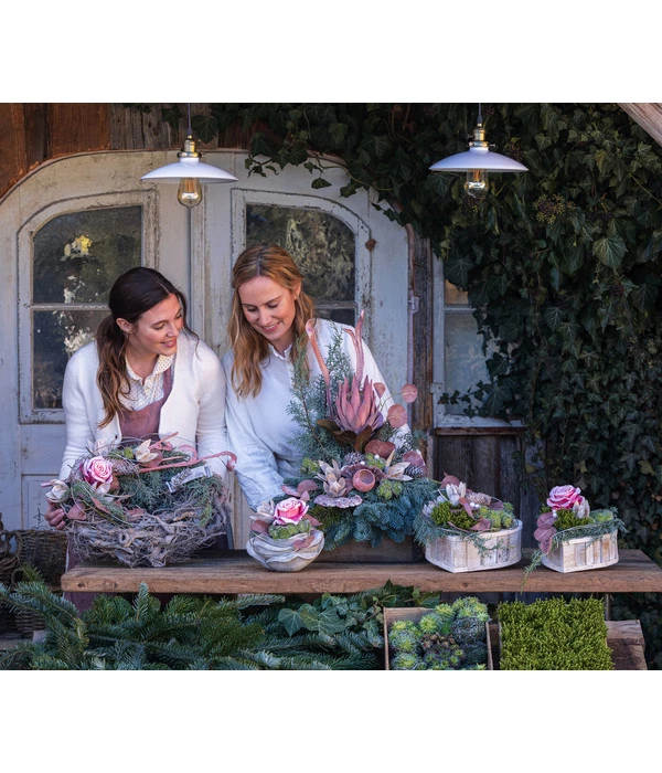 Allerheiligen, Allerseelen und Totensonntag sind traditionell Tage, an denen wir unserer Toten gedenken und die Gräber als Familie besuchen. Doch auch davor und danach zeigt schöner Grabschmuck, dass wir unsere Toten nicht vergessen haben und ihre letzte Ruhestätte verschönern möchten. Wer nur einen kleinen, aber liebevollen Akzent setzen möchte, etwa an einem Urnengrab, der kann dekorierte Schalen wie das Grabgesteck Im Himmel wählen. Es kommt in einem hochwertigen Beton-Gefäß in Rosenform und wurde liebevoll von Hand arrangiert. Dank der gewählten Materialien hält dieser Trauerschmuck lange und darf das Grab vielleicht sogar bis zum Frühjahr zieren.