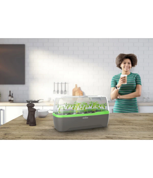 Stylisches Design in Kombination mit pflanzlichen Elementen liegt absolut im Wohntrend. Dank des topmodernen Gewächshauses von BoQUBE gelingt dies mit Stil. Die Handhabe dabei ist denkbar einfach: Bei dem ideal gehaltenen Abstand zwischen den Keimlingen lassen Sie zehn Quelltabletten mit Saatgut keimen. Ein cleveres Bewässerungssystem in Form von Kanälen führt gleichmäßig Wasser zu und verhindert Staunässe. Dank der integrierten Gießöffnung mit beidseitiger Belüftung brauchen Sie die Abdeckung nicht entfernen, um Ihre Pflanzen mit dem Lebenselixier zu versorgen. Der Deckel gewährt der Indoor-Flora Schutz und Ihnen – aufgrund seines bruchsicheren und durchsichtigen Materials – einen glasklaren Durchblick. Bestellen Sie jetzt dieses ästhetische Accessoire und erfreuen Sie sich schon in Bälde an Ihrem BoQUBE Gewächshaus!